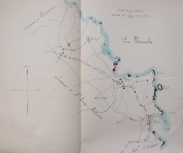 Carte des dépôts naturels de sable magnétique noir réfractaire sur la côte du Portrieux, enlevé par Durelle, verrier à Rennes en 1881, refus de l'administration (AD 22)Immatriculation