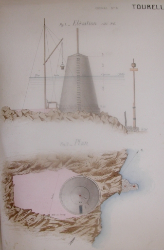 Dessin : plan de situation et élévation de la tourelle de la Hergue, 1884 (AD 22)Immatriculation