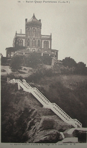 Les escaliers de la plage de la Comtesse, descendant du château de Calan, aujourd'hui Kermor (AD 22, Fonds Vallée)Immatriculation