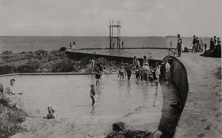 Vue des deux piscines au pied du rocher du Châtelet, 1er quart 20ème siècle (AD 22)Immatriculation