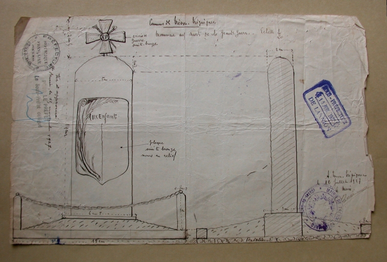 Plan du monument aux morts, s.n., 1927 (AD 22)Immatriculation