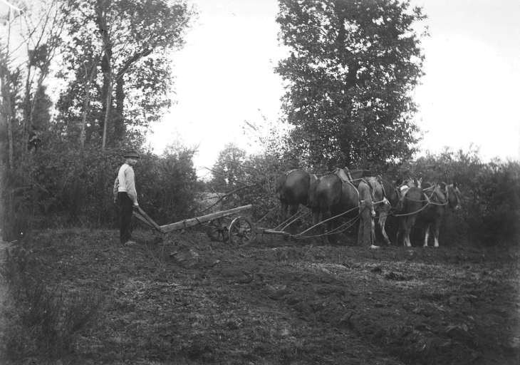 Créhen, scène de labours vers la fin du 19ème siècle, par Alain Raizon du Cleuziou (coll. Raison du Cleuziou, AD 22)Immatriculation