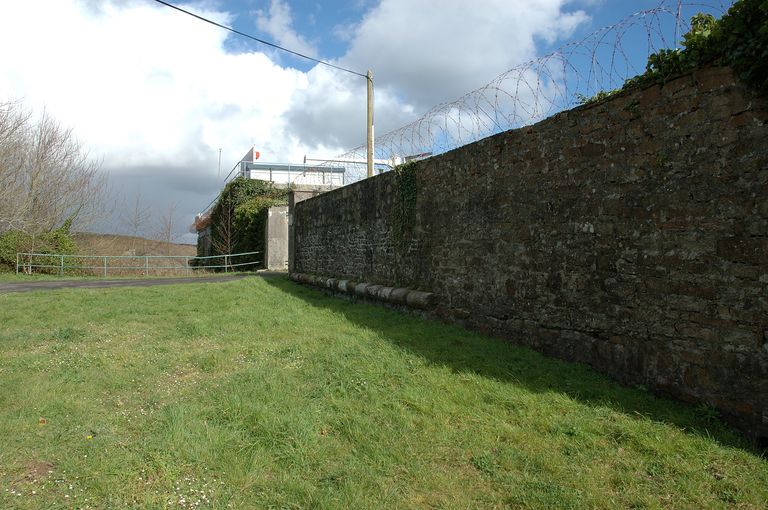 Vue de la batterie haute du Mengant : entrée. Situé au ras du sol du fait du comblement des fossés, le cordonImmatriculation