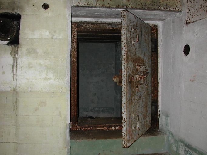 Vue de la casemate de type 505 du Portzic : intérieur, porte blindéeImmatriculation