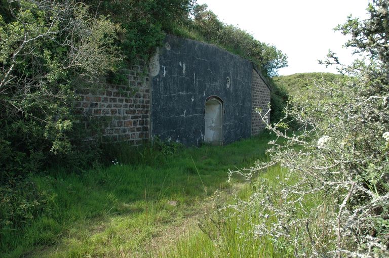 Vue de la batterie de droite des Capucins : magasin à munitions en béton armé sous le massif de la traverse d'extrémité droiteImmatriculation