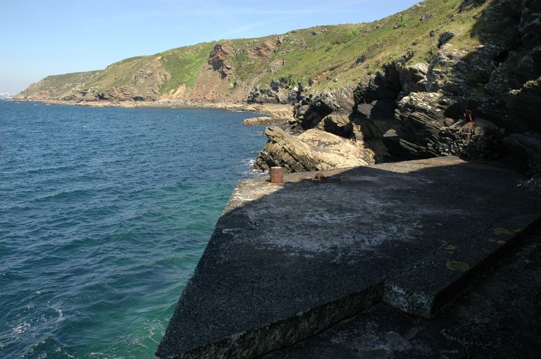 Vue du poste lance-torpilles de la pointe de Cornouaille. Situé au ras de l'eau, à l'est de la batterie de BeaufortImmatriculation