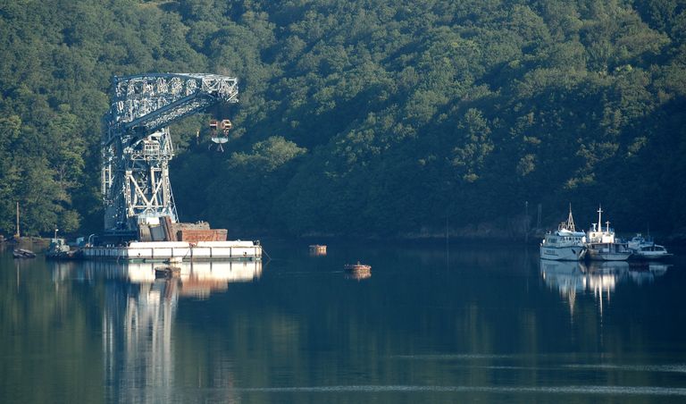 L'Aulne maritime : ponton-grue construit de 1933 à 1934 de l'arsenal de Brest sur une barge en 2004 dans l'anse de PenfornImmatriculation