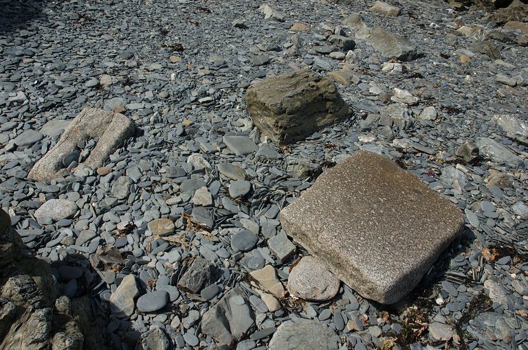 Vue de la grève au pied de la batterie casematée : pierre de taille (état en 2006)Immatriculation