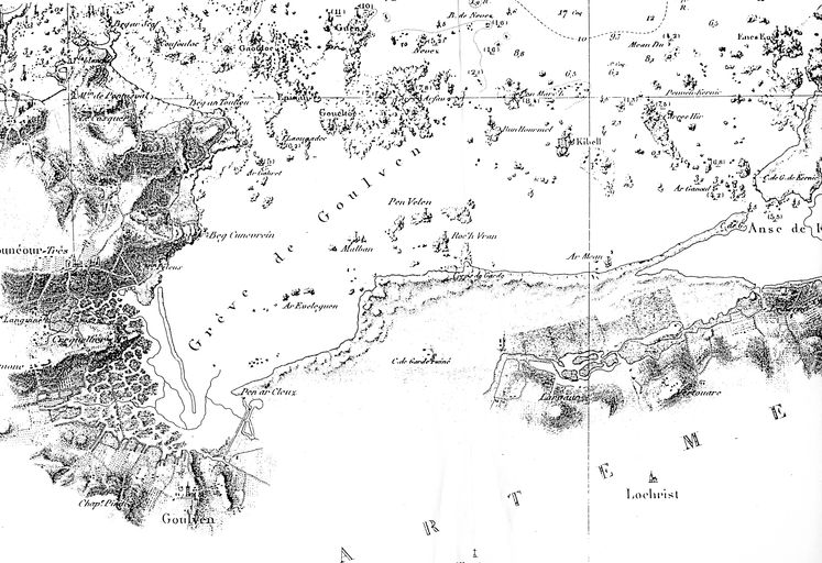 Carte de la grève de Goulven à Tréflez : le corps de garde est mentionné comme ruiné (collection : Bernard Mercier - Association Sevel Ploueskad)Immatriculation