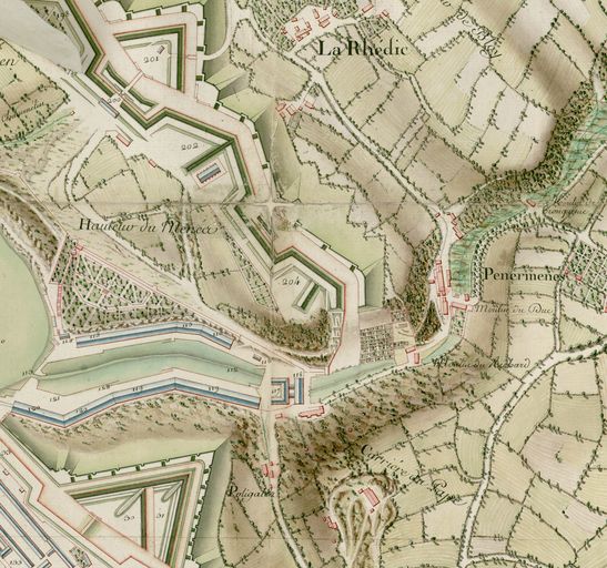 Détail du plan de Brest et de ses environs, relatif aux projets pour l'agrandissement de l'enceinte, 1790 par Jean-Nicolas Desandrouins (ingénieur, directeur à Brest des places de Bretagne)Immatriculation