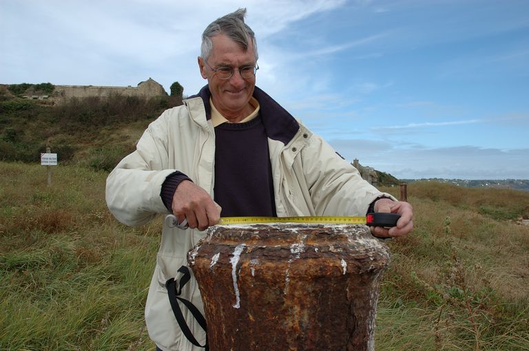 Crozon : vue de l'île des Morts en 2007, canon-bollard permettant de capeler l'oeil des amarres. L'historien Marcel Burel a consacré un ouvrage entier aux îles de Trébéron et des Morts en 2003.Immatriculation
