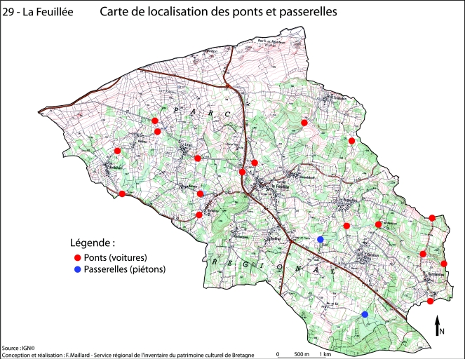 Ponts et passerelles sur la commune de La Feuillée,