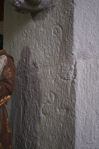 Intérieur, nef, marques de tâcheron sur une pile de la quatrième travéeImmatriculation