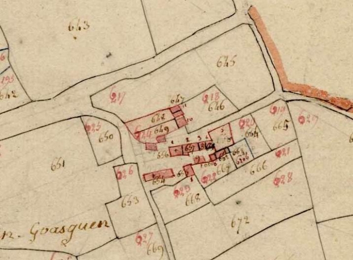 Extrait du cadastre de 1812, section G 2 (A.D. Finistère, 3 P 19)Immatriculation