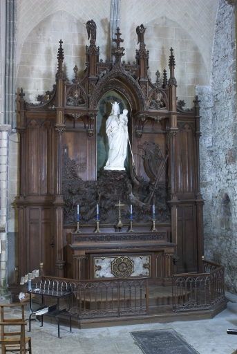 Ensemble de l'autel de la Vierge : autel, gradin d'autel, retable, degré d'autel, église Saint-Suliac (Saint-Suliac),