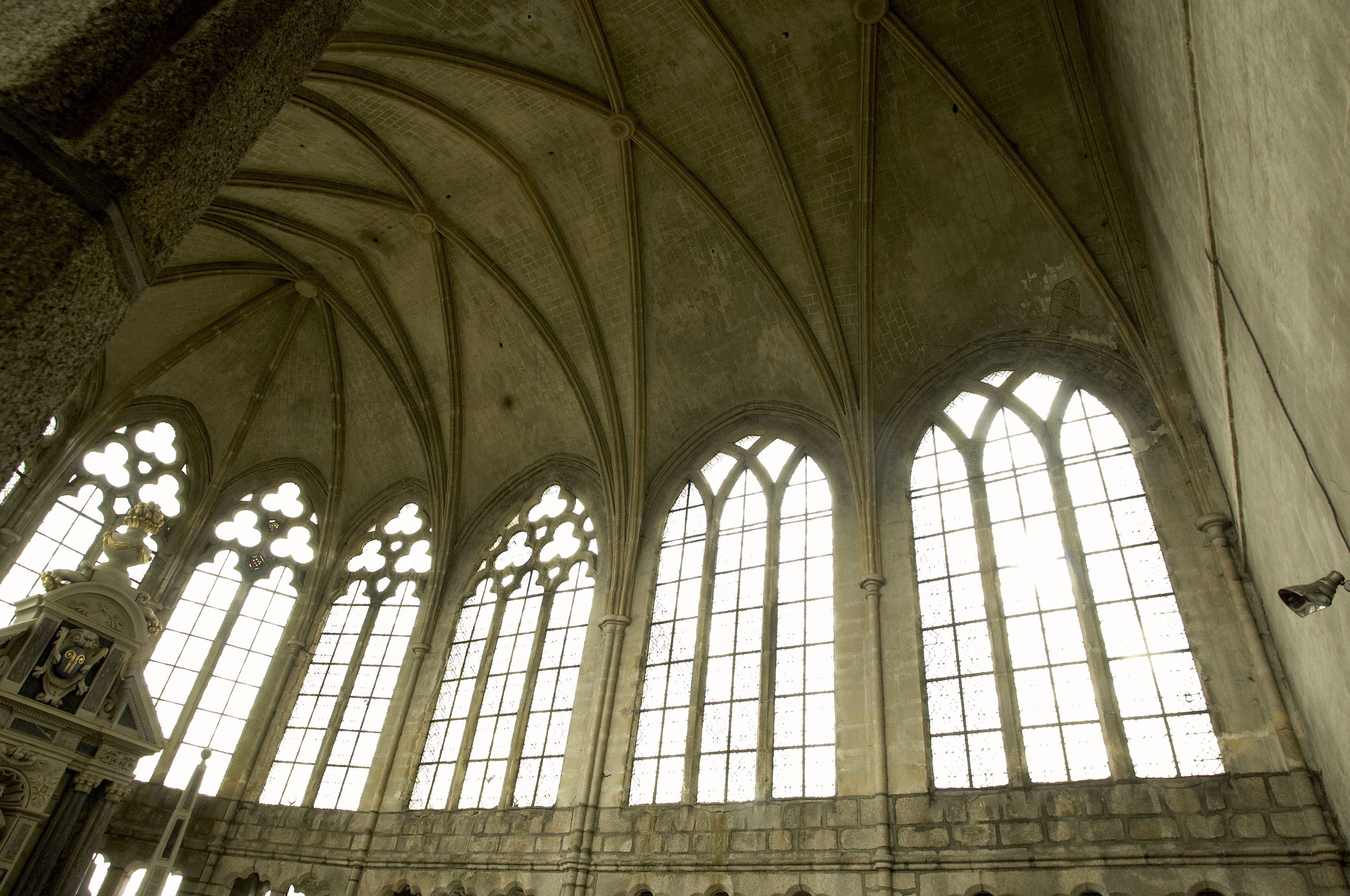 Choeur, vue oblique en contre plongée vers les voûtes.Immatriculation