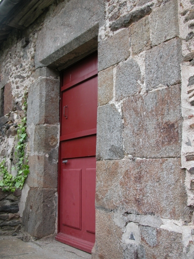 Façade nord-est, porte du premier étage. La mise en oeuvre des pierres indiquerait une ancienne porte doubleImmatriculation