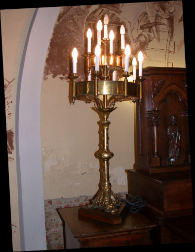 Garniture d'autel : croix et 6 chandeliers, 2 chandeliers de choeur,