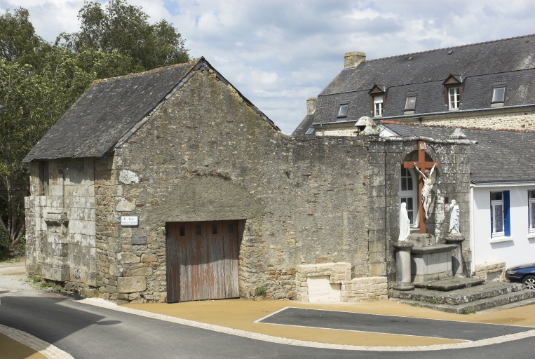 Vestiges de l'église paroissiale remployés dans le mur de clôture et dans une dépendance de l'ancien établissement de religieuses, pierre de taille, 1ère moitié 18e siècle. Section AB 14Immatriculation
