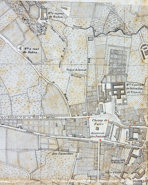 Plan de la ville de Vannes et de ses environs, par Bassac, éd. 1869. Quartiers de la Madeleine et de Rohan. AM Vannes 9Fi.Immatriculation