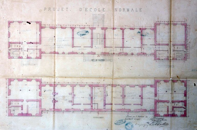 Plan du rez-de-chaussée et du soubassement, signé de Maigné, 1881. AD Morbihan N 757.Immatriculation