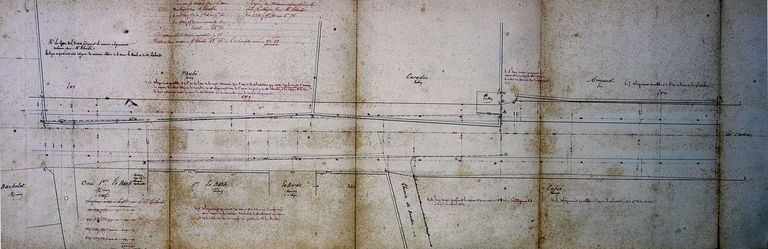 Projet de rectification de la RN 165 de Nantes à Audierne à la sortie de la ville de Vannes près du champ de foire. AD 56, S 245 Plan du 11 juillet 1850 dressé par M. de la Tournaie, ingénieur des Ponts-et-ChausséesImmatriculation