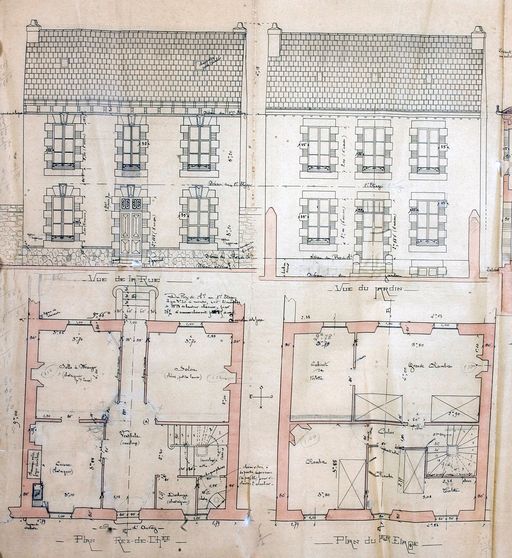 Construction d'une maison pour Melle Fontaine par J. Caubert, 1903 : élévations et plans. AD Morbihan 149 J 360.Immatriculation