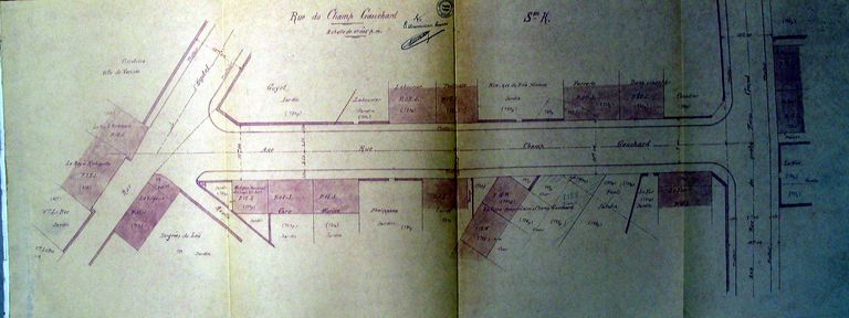 Projet de classement dans la voirie urbaine de la rue du Champ Gauchard par Thiévard, 1931. AD 56 3 O 2182.Immatriculation