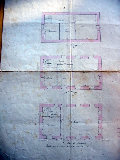 Plan au sol et de l'étage, par Halouis, 1853. AD Morbihan, 2O 161/ 1337.Immatriculation