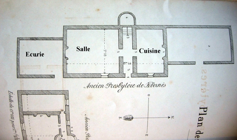 Plan de l'ancien manoir presbytère de Kerbernès, croquis par l'abbé Le Tallec. AD Morbihan.Immatriculation