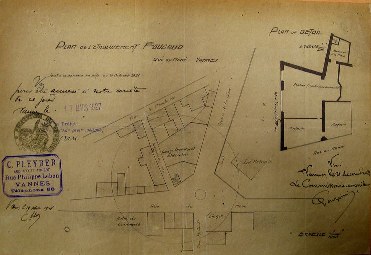Plan des établissements Foucaud par l'architecte Pleyber, 1927. AM Vannes 5I162.Immatriculation