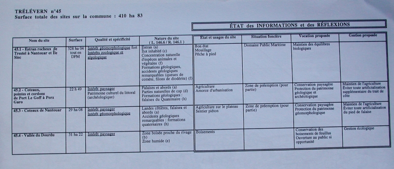 Tableau : état des informations et des réflexions sur les espaces littoraux de la commune (DIREN Bretagne, 1988)Immatriculation