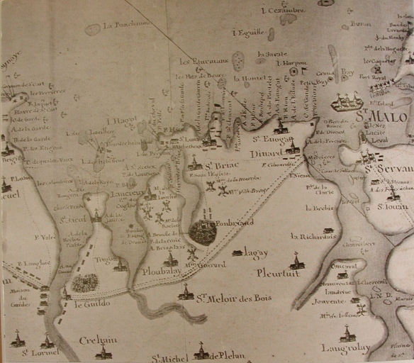 Extrait de la carte du Chevalier Mazin, datée de 1756 : remarquer la situation des moulins (collection particulière, Association des Amis de St-Jacut)Immatriculation