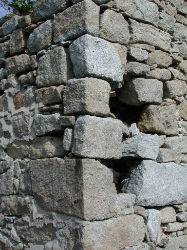 Détail du pignon Sud-Ouest : remarquer l'état du mur et le déchaussement des pierresImmatriculation