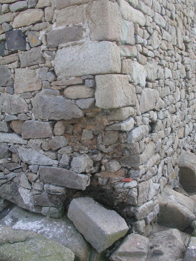 Vue de détail du déchaussement à la base du pignon Nord-EstImmatriculation