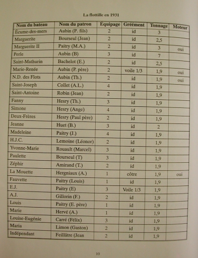 Tableau nominatif de la flottille de pêche jaguine en 1931 (collection particulière, Amis du Vieux St-Jacut)Immatriculation