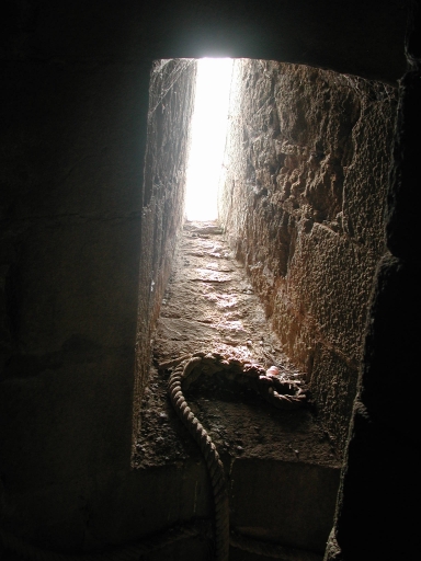 Vue d'une meurtrière depuis l'escalier du type archèreImmatriculation