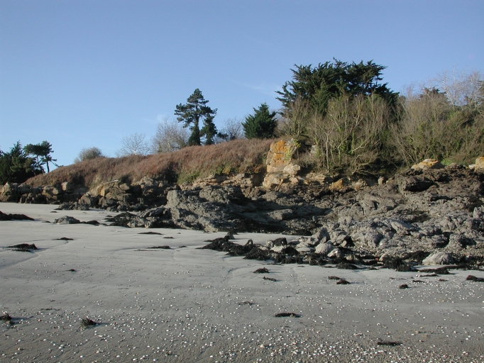 Le versant rocheux Sud de l'île devant le port de la Chapelle, avec dans les taillis, les ruines de la chapelle du 15ème siècleImmatriculation