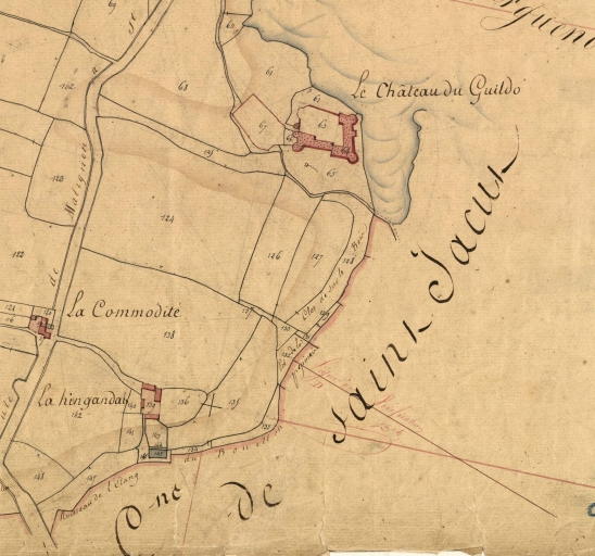 Extrait du cadastre de 1827 : le ruisseau du Bouillon qui dessert le lavoir de Giblaine (AD 22)Immatriculation