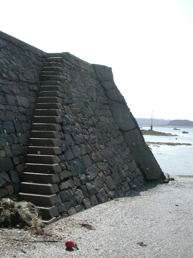 Vue du mur de quai de la jetée : remarquer les marches de l'escalier en pierre de tailleImmatriculation