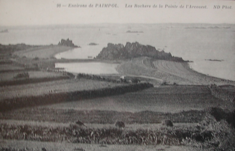 Le double tomobolo de l'arcouest face au chenal du Ferlas : remarquer les champs cultivés, transformés aujourd'hui en parking (carte postale, collection particulière)Immatriculation