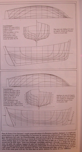 Dans : 'Des Paimpolais en Iroise, A Durzunel, la renaissance d'un canot loguivien'/ Clochon, Jean-Pierre, Le Chasse-Marée n° 20, Douarnenez : Editions Le Chasse-Marée/Armen, 1985, p. 70.Plan.