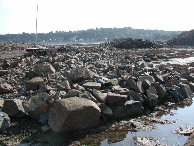 Vue des blocs de rochers juxtaposés de la pêcherie principaleImmatriculation