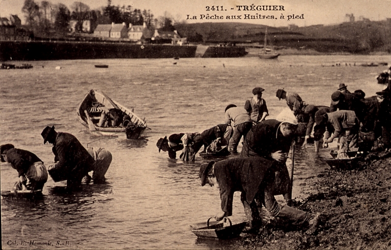 La pêche à pied des huîtres dans la rivière de Tréguier, au début du 20ème siècle (carte postale, collection particulière)Immatriculation