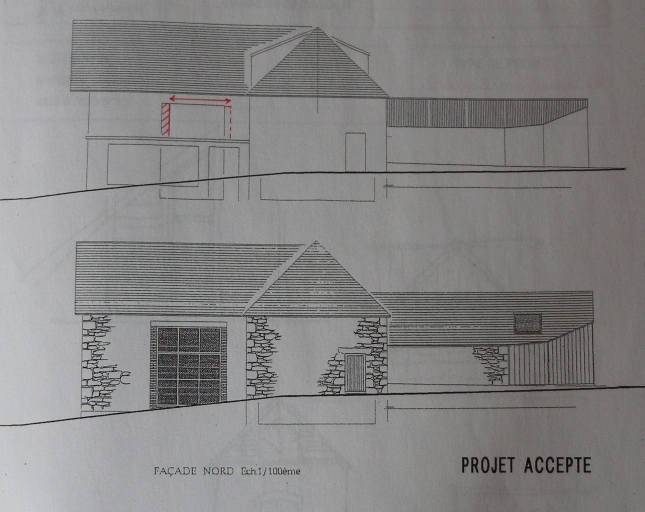 Plan du moulin en cours de restauration : façade Nord (CAUE 22, collection particulière)Immatriculation