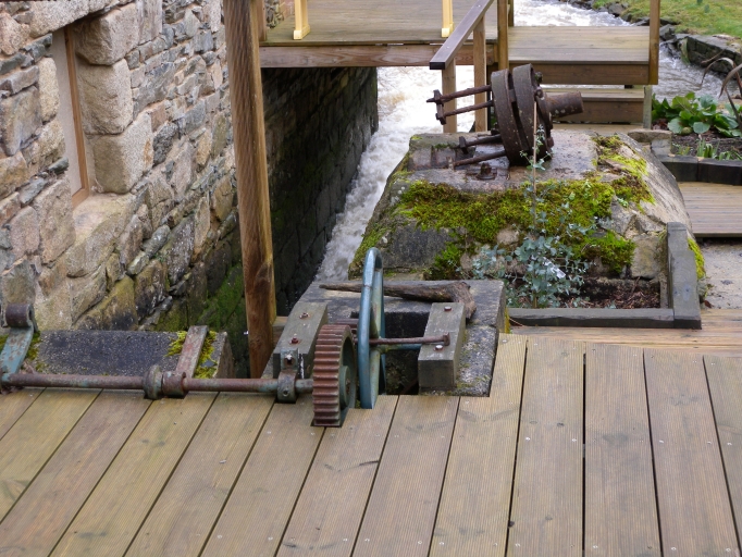 Vue du mécanisme extérieur du moulin en état de fonctionnementImmatriculation