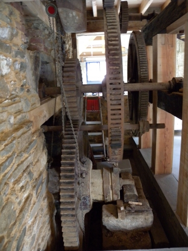 Vue de détail des rouages de transmission à l'intérieur du moulinImmatriculation