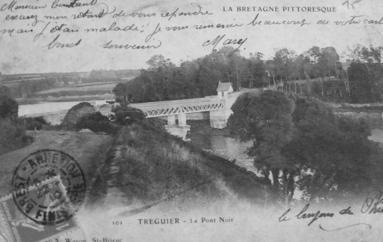Vue de la passerelle du Pont-Noir vers 1910 (carte postale, collection particulière)Immatriculation