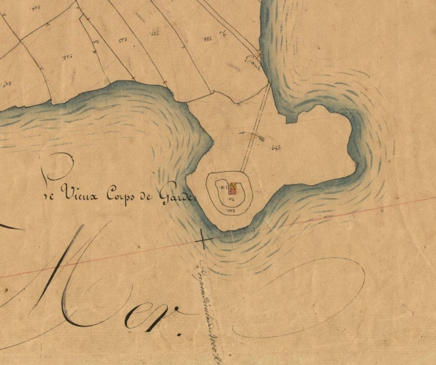 Extrait du cadastre de 1834 : le corps de garde du Palud (AD 22)Immatriculation