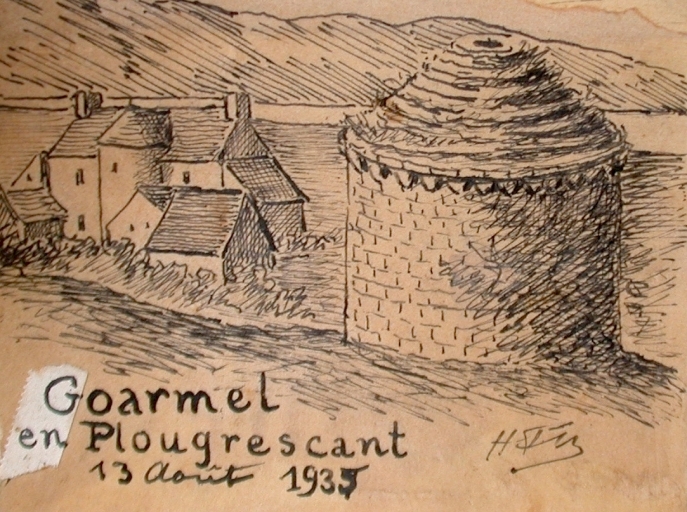 Vue générale du manoir et du colombier de Goarmel, croquis du vicomte Henri Frotier de La Messelière, 13 août 1935 (AD 22)Immatriculation